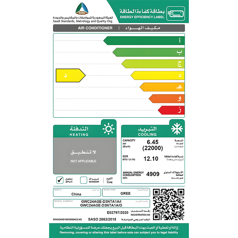 مكيف جري اسبلت 22100وحدة 2 طن بارد-GWC24AGEXF-D3NTA1A