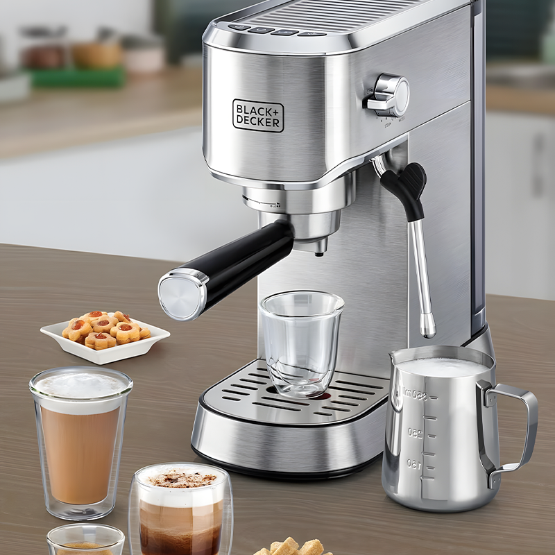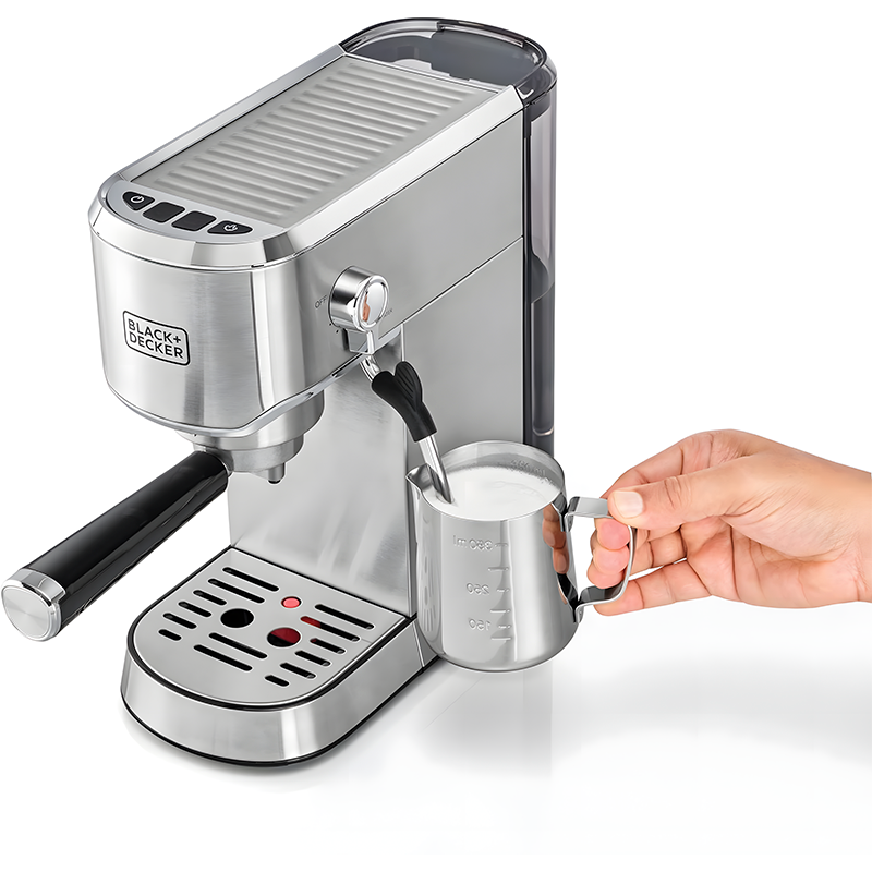 السعر الحالي هو: 299,00 . بلاك اند ديكر ماكينة صنع الاسبرسو والكابتشينو، يدوية، 1450 واط، فضي – ECM150-B5